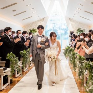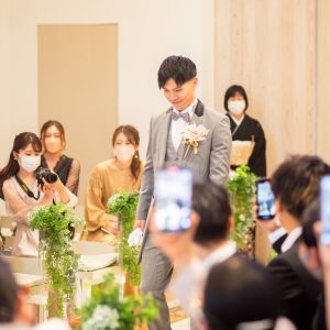 空間にいる皆様の「笑顔」を感じられる新郎入場。