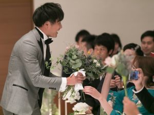 感謝の気持ちを心に持ちながら新郎様のもとへ歩み寄ります