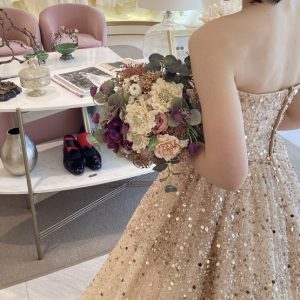 濃いお色味のカラードレスに抵抗があるという花嫁様におすすめです。