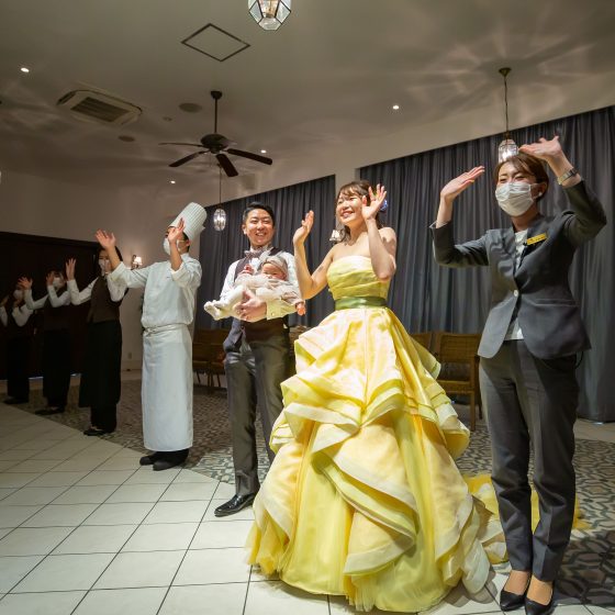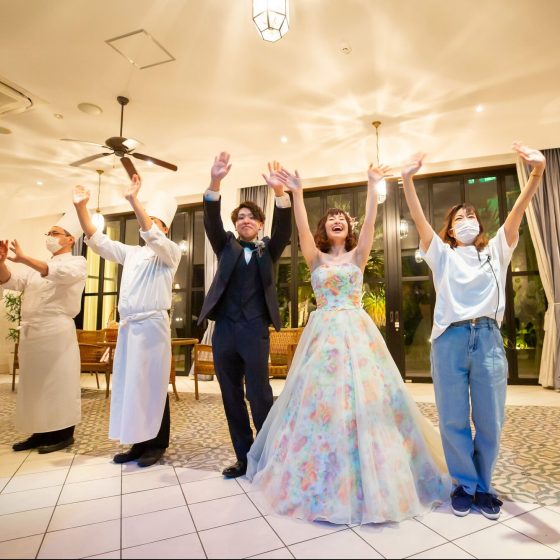 新郎新婦様とスタッフ全員がゲスト皆様にとびきりのSmileを届けるシーンです