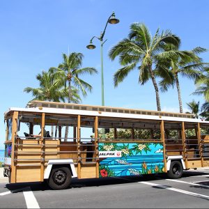 ④ワイキキエリアの移動に「レインボートロリー」乗り放題