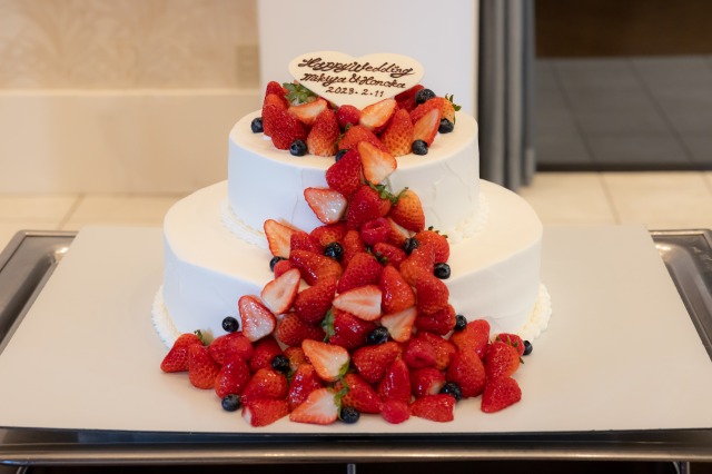 結婚式で王道いちごのケーキに入刀することを