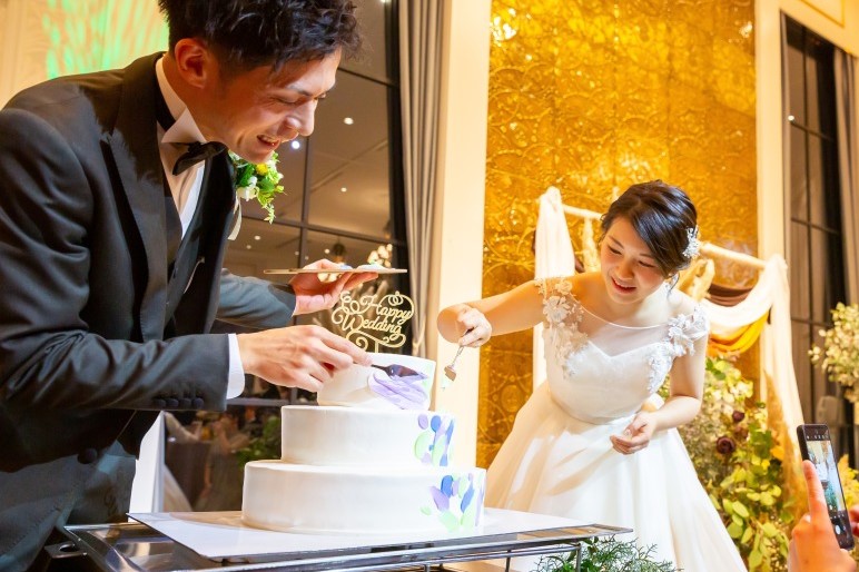 新郎新婦様でクリームを塗り、完成させるという演出