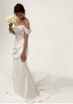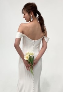 ボディラインに沿う美しい曲線を描くマーメイドドレス。