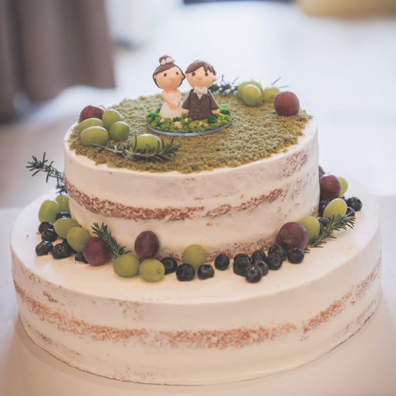 今では定番となったニューヨーク発祥のネイキッドケーキは一般的なウエディングケーキと違い、全面にクリームを塗らないのが特徴。
