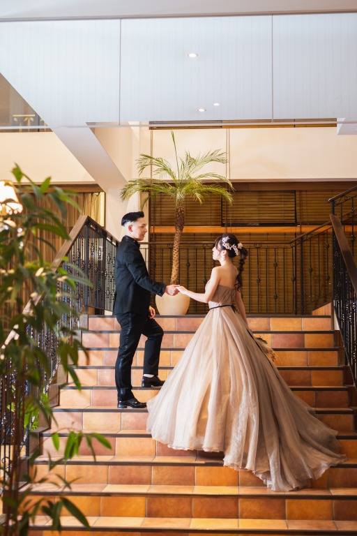 階段を使うことで新婦様の拘りのドレスが綺麗に流れてとても素敵です。