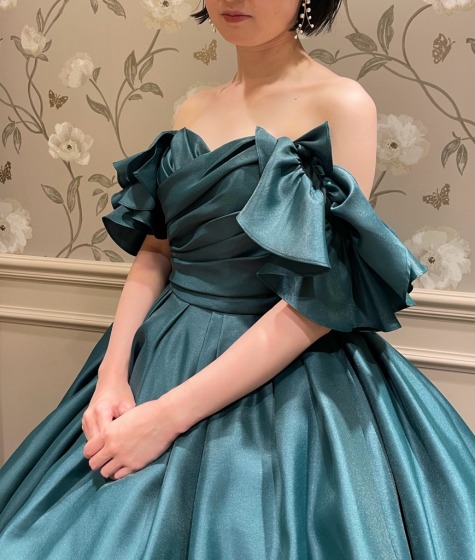 フリルショルダーを外し、ビスチェタイプでお召いただくと