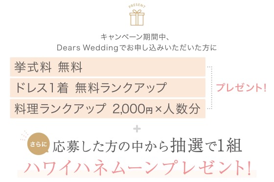 Dears Weddingで30名様以上の挙式・披露宴をお申込のお客様