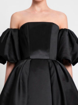 トレンドのブラックカラーをサテン特有の光沢を活かし