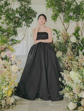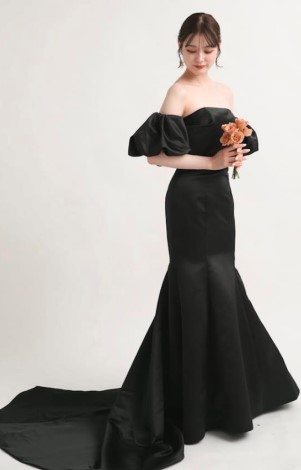トレンドのブラックカラーで仕立てたスタイリッシュなマーメイドドレス。