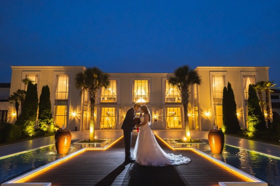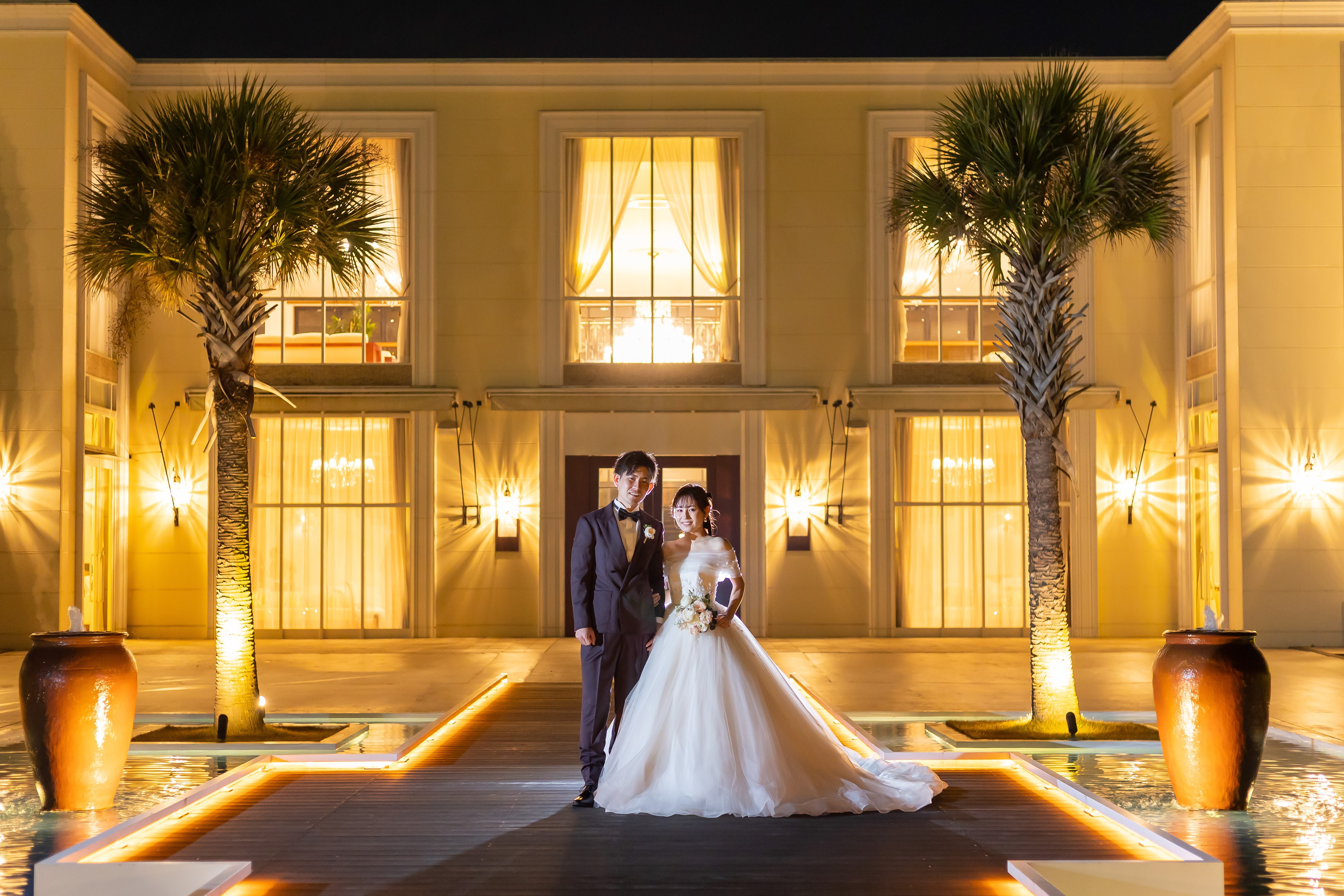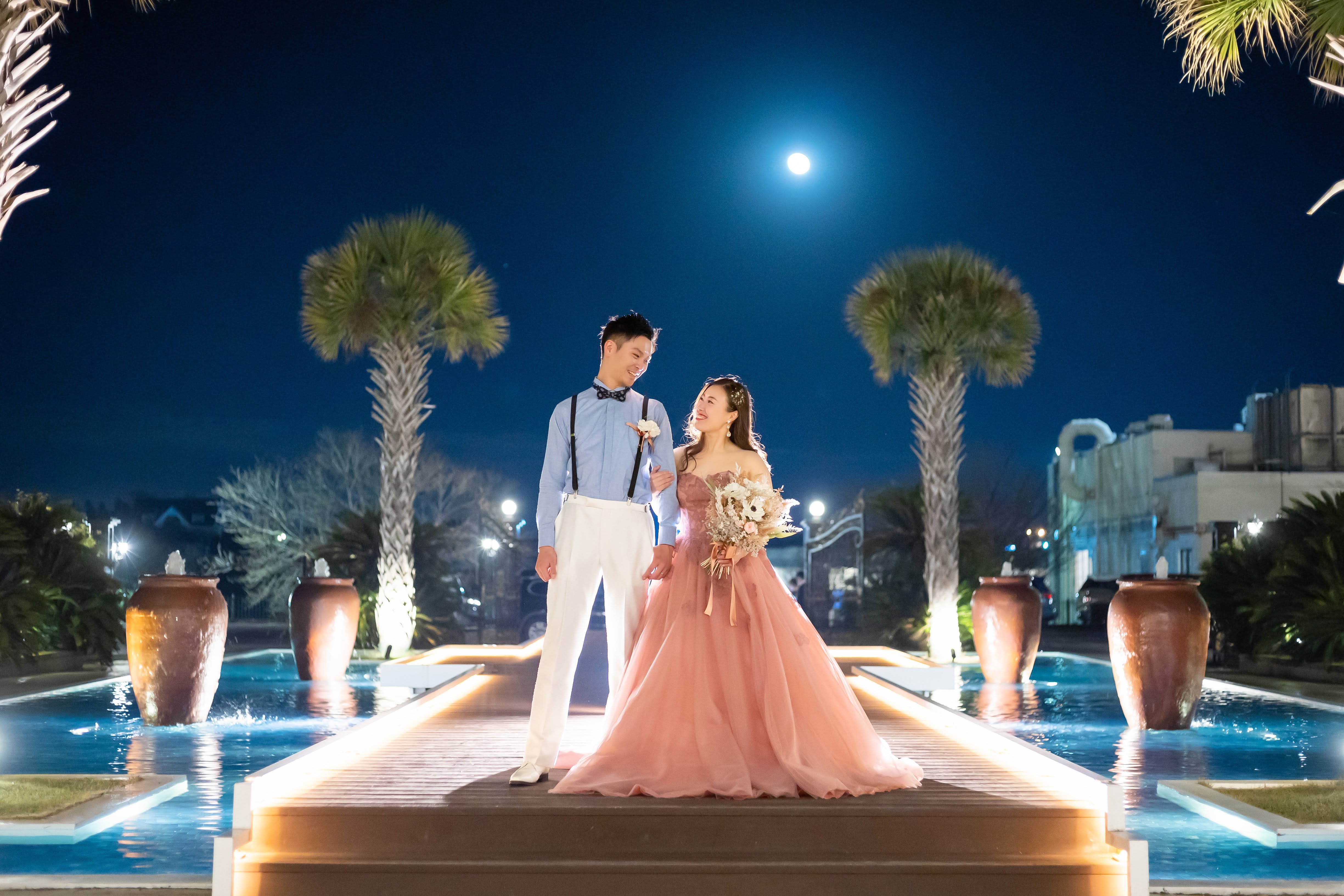 ナイトフォトの前撮りは幻想的で大人っぽい1枚に仕上がると