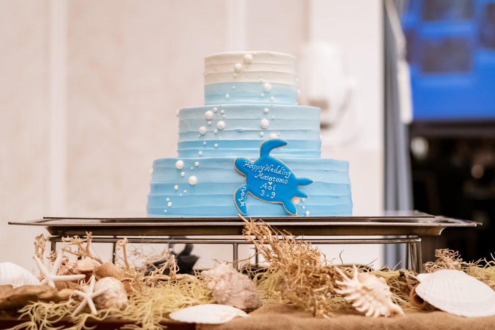 <リゾートテイストなブルーグラデーションケーキ>