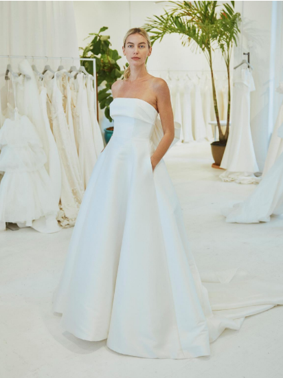 美しいAラインドレスシンプルなデザインが素材の美しさを引き立てます。