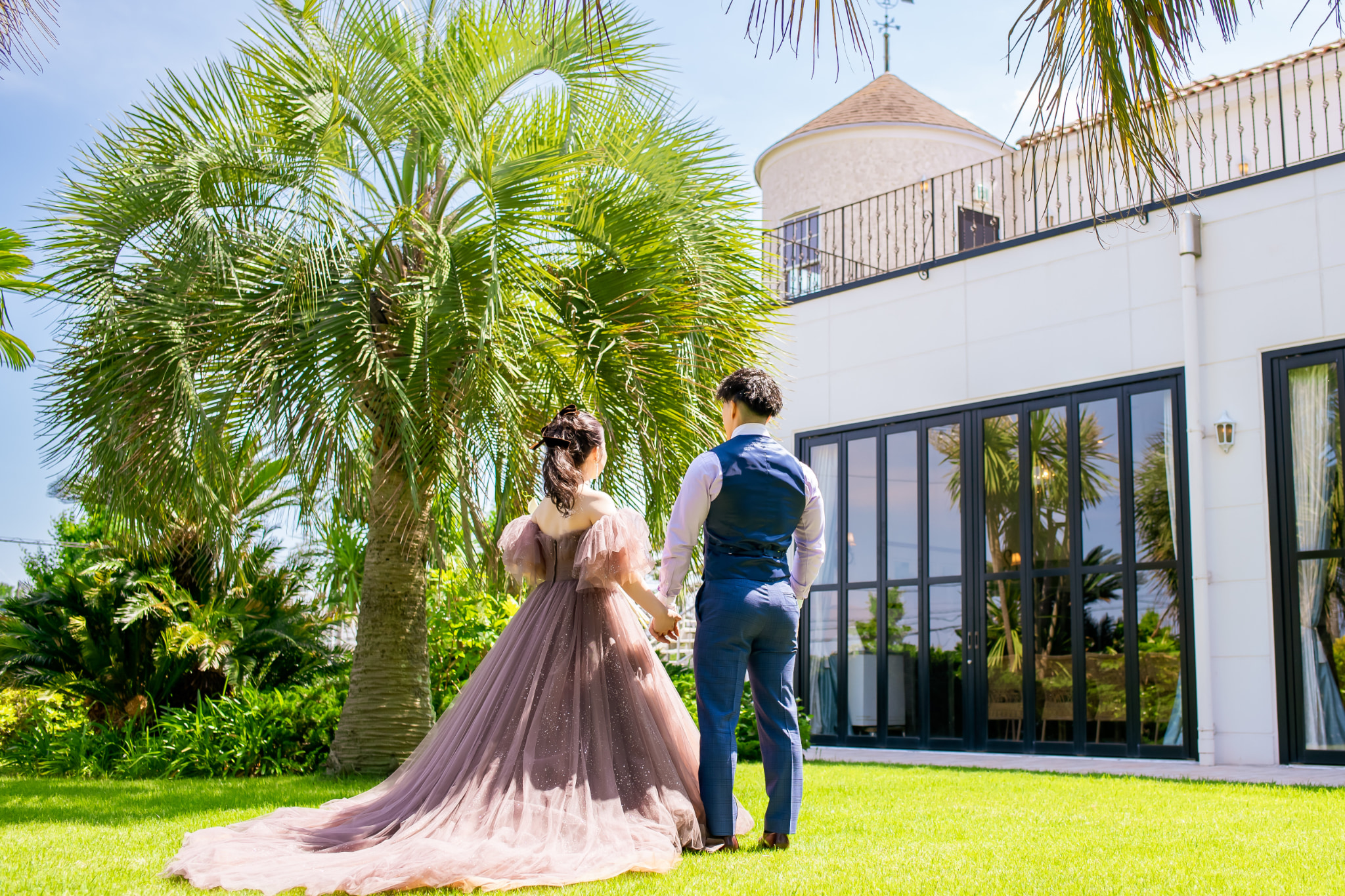 ガーデンでこんなに素敵な式後のツーショットを取ることもできちゃいます。