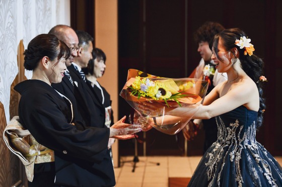 新婦様のお手紙が結んだ後に、親御様への記念品の贈呈が行われます。
