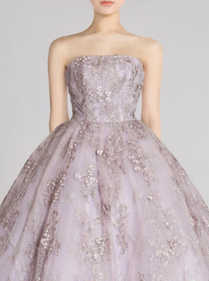 絶妙な上品なカラーと華やかさを兼ね備えた1着に。