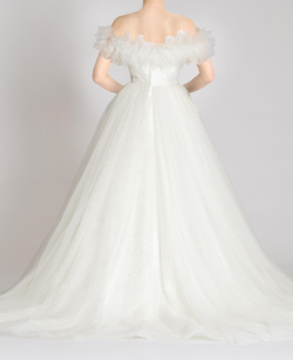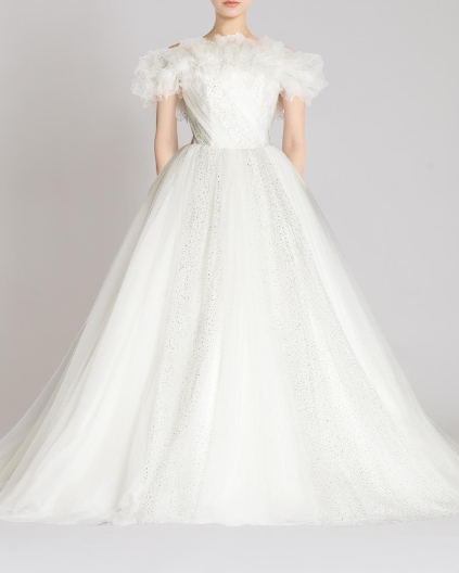 全体に散らばめられたまばゆい煌めきや、たっぷりと重ねたチュールスカートが