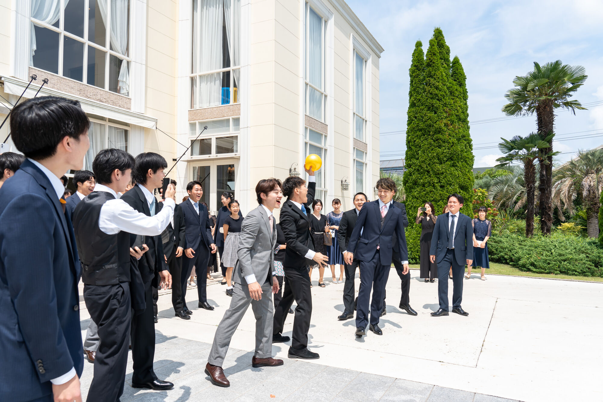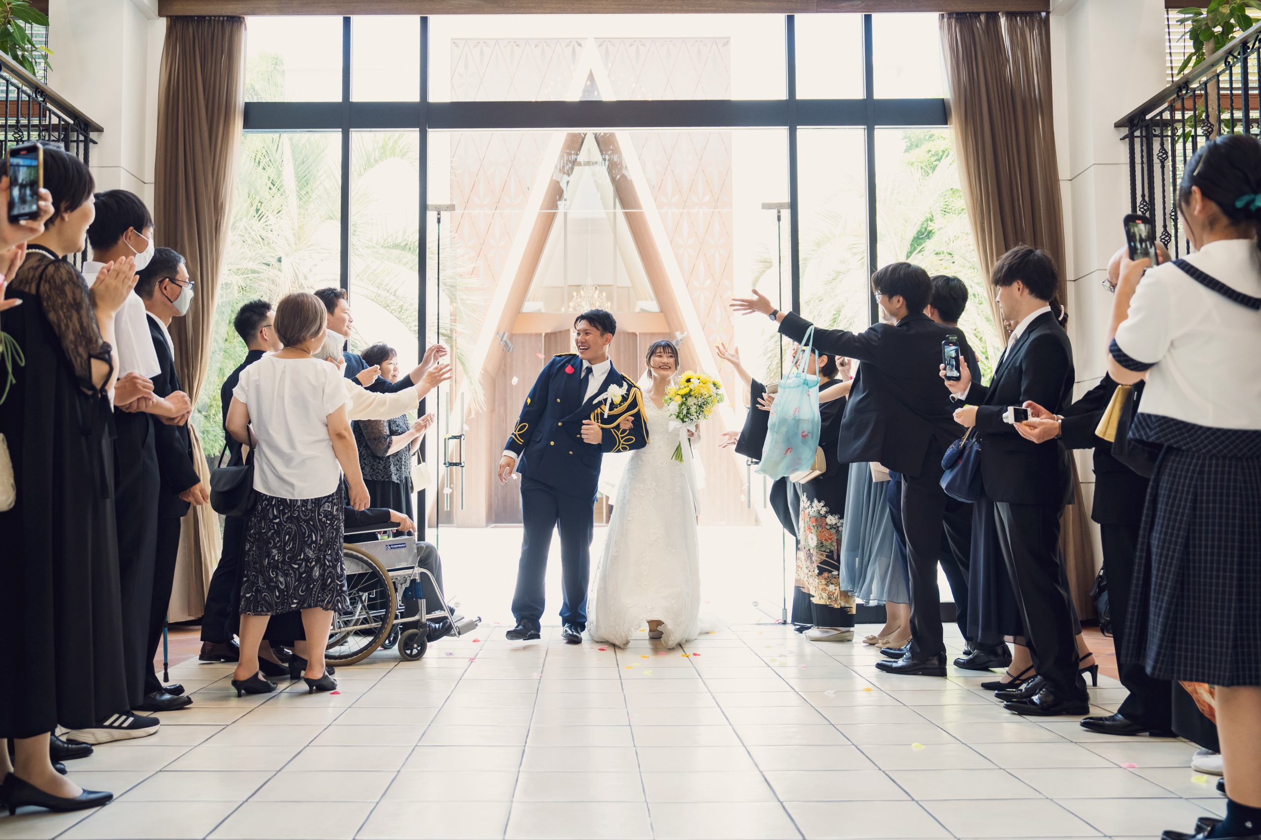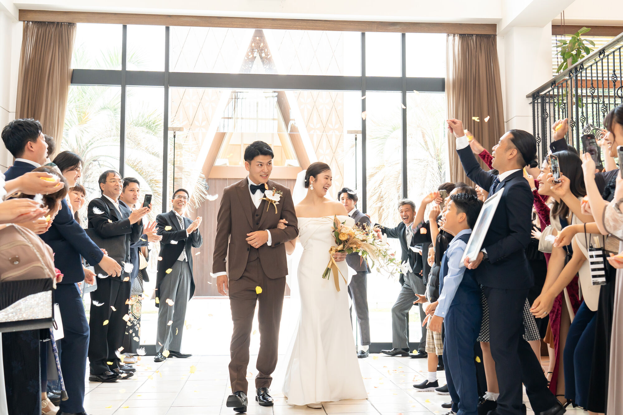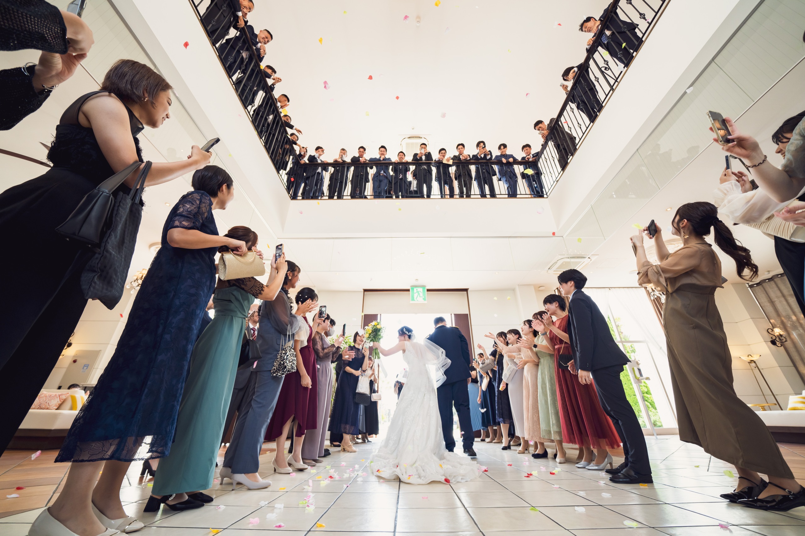 挙式とは違ってゲストの方から直接のおめでとー!の声が降り注ぐ時間。