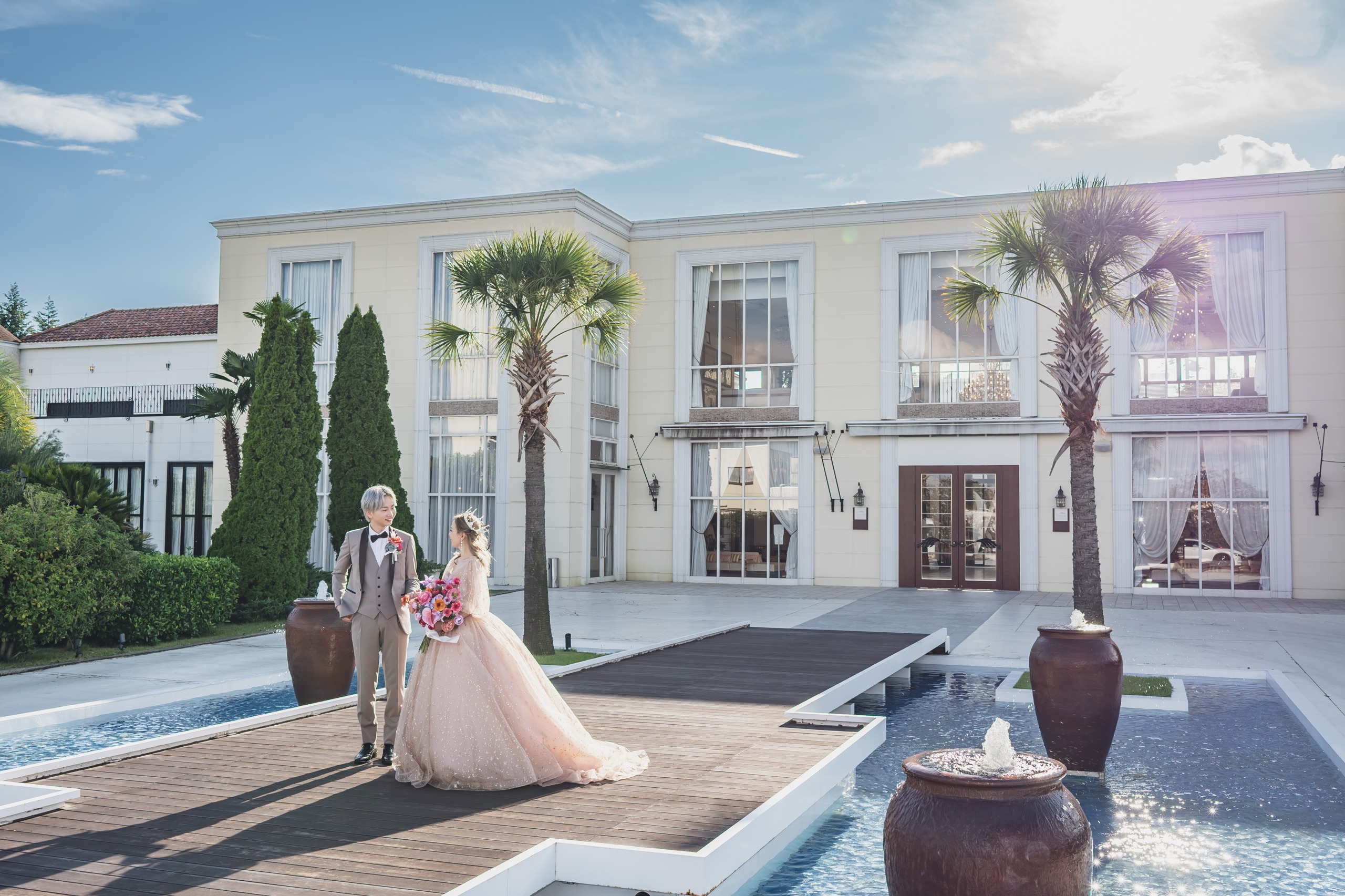 結婚式当日はゲストの方が沢山いる関係で、会場全体を使用したお写真撮影が難しくございます、、