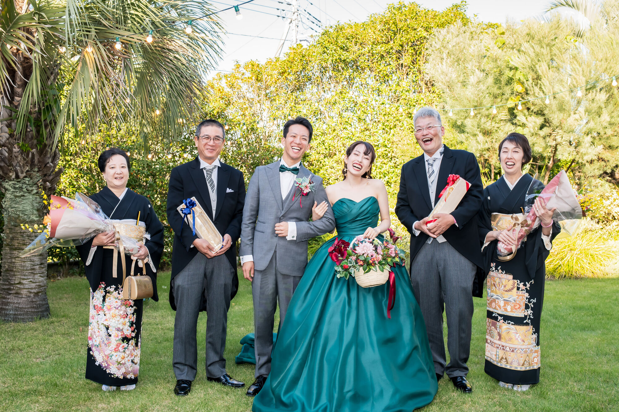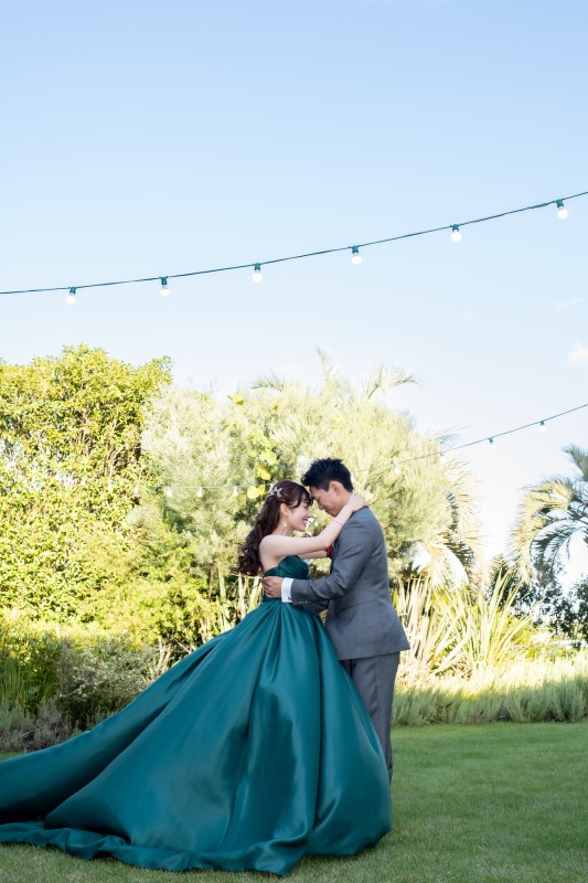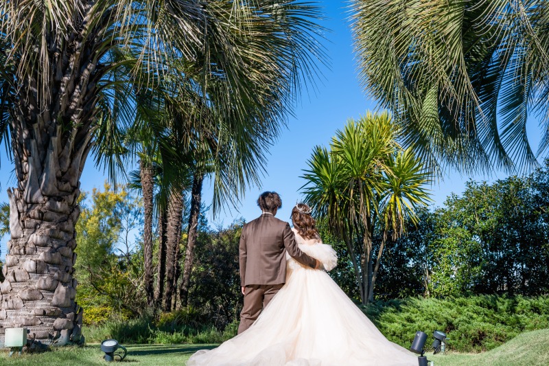 緑溢れるガーデンでご友人やご家族と、大切に選んだドレス&タキシードの全身姿を残すことができます。
