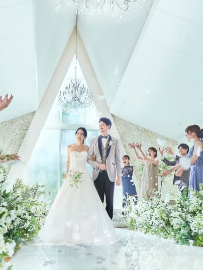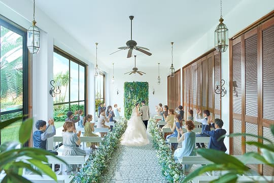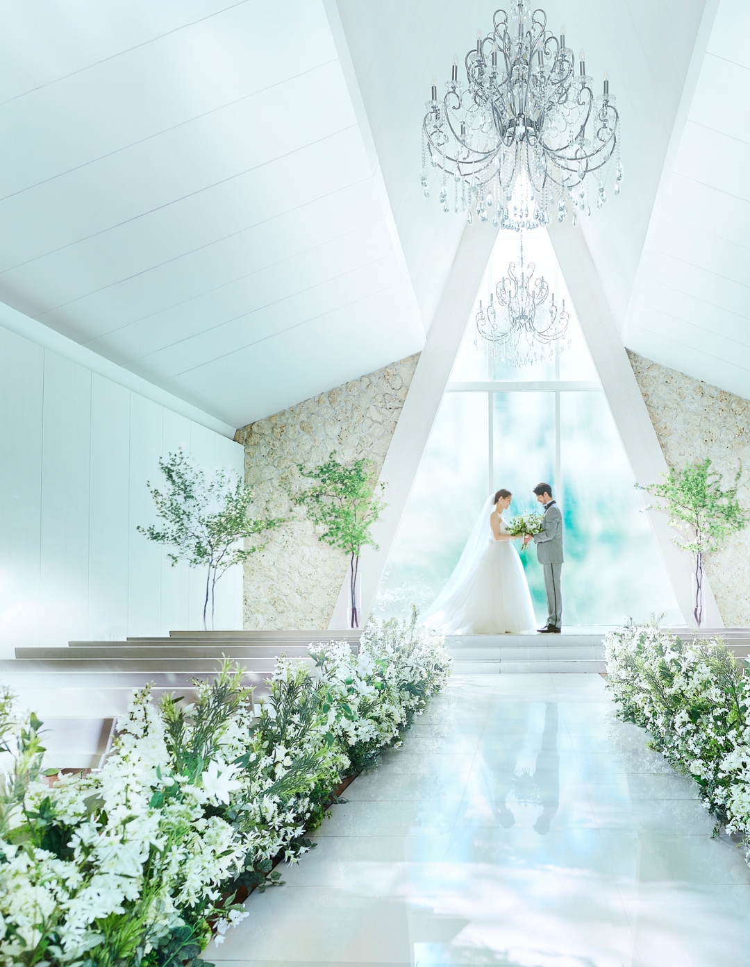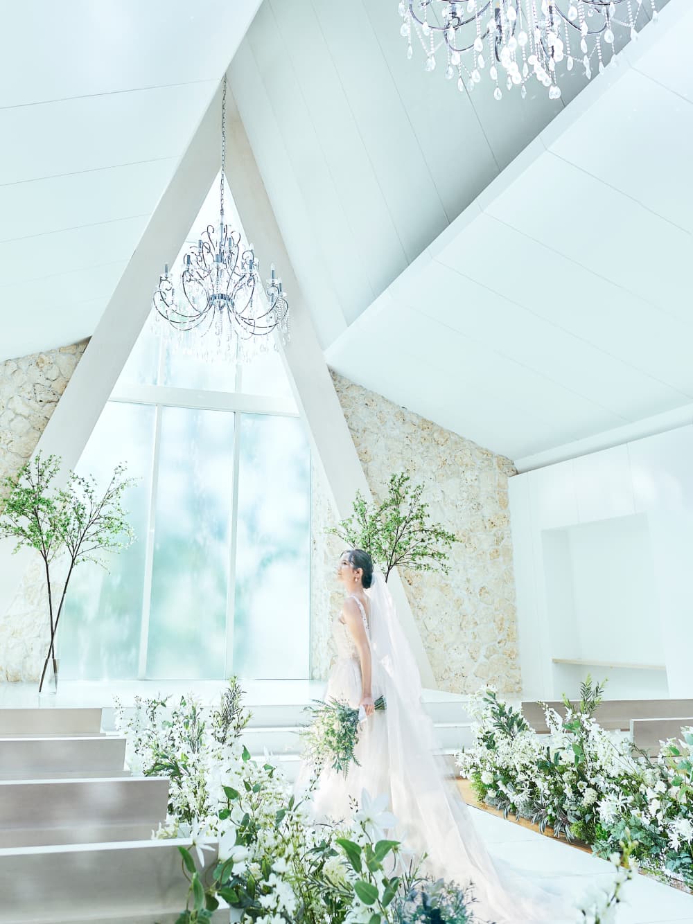 白亜の独立型チャペルに加え、大きな窓から陽光が差し込み鮮やかなガーデンを望むリゾートチャペルが誕生。自然体で最幸の時間をお過ごしいただけます。挙式スタイルは、神聖なキリスト教式はもちろん、ご参列いただいた方々との絆を深める人前式も執り行っていただけます。