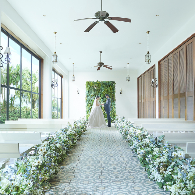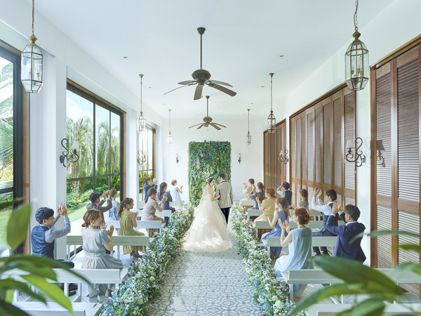 白亜の独立型チャペルに加え、大きな窓から陽光が差し込み鮮やかなガーデンを望むリゾートチャペルが誕生!自然体で最幸の時間をお過ごしいただけます。挙式スタイルは、神聖なキリスト教式はもちろん、ご参列いただいた方々との絆を深める人前式も執り行っていただけます。