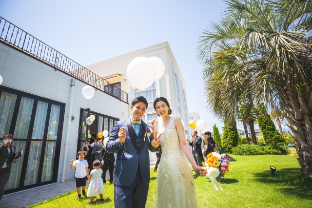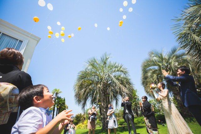 広々としたガーデンでゲスト全員でのバルーンリリースが可能!