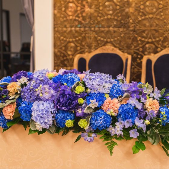 会場内は大好きなロイヤルブルーの色をベースとして落ち着いたカラーに少し明るい色をアクセントとして入れました。