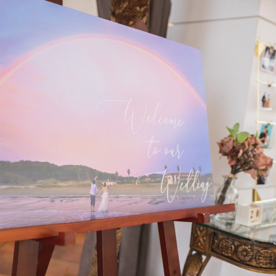 ウェルカムスペースの飾り付けは、とにかく今までの思い出の写真をフォトガーランドにしてたくさん飾り、待ち時間もゲストの皆様に楽しんでもらえるように頑張りました!