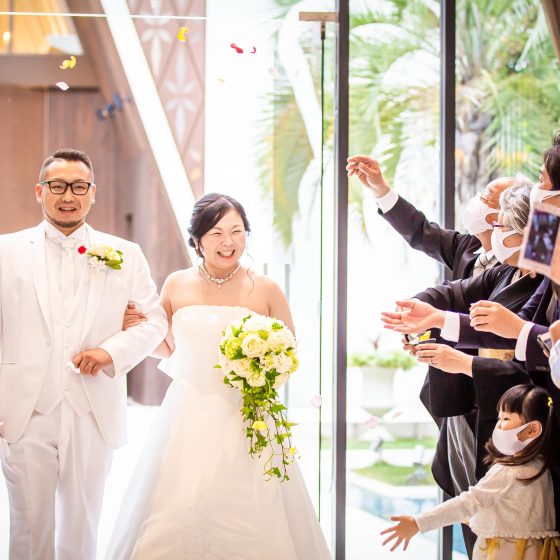 スタッフさんや司会の方からもマスク着用の声掛けと消毒液の使用の声掛けをして頂き、列席者が戸惑う事なく行動出来るように対応し、感染予防に努めました。