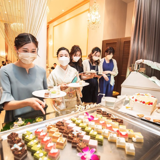 2人の好きな食材や味付けを取り入れ、オリジナルのメニューを作っていただき、デザートは新郎新婦からゲストへのサプライズとしてデザートビュッフェに。2人の好きなソーキそばや海鮮丼も出してもらい、お腹いっぱい食べてもらえるようにしました。