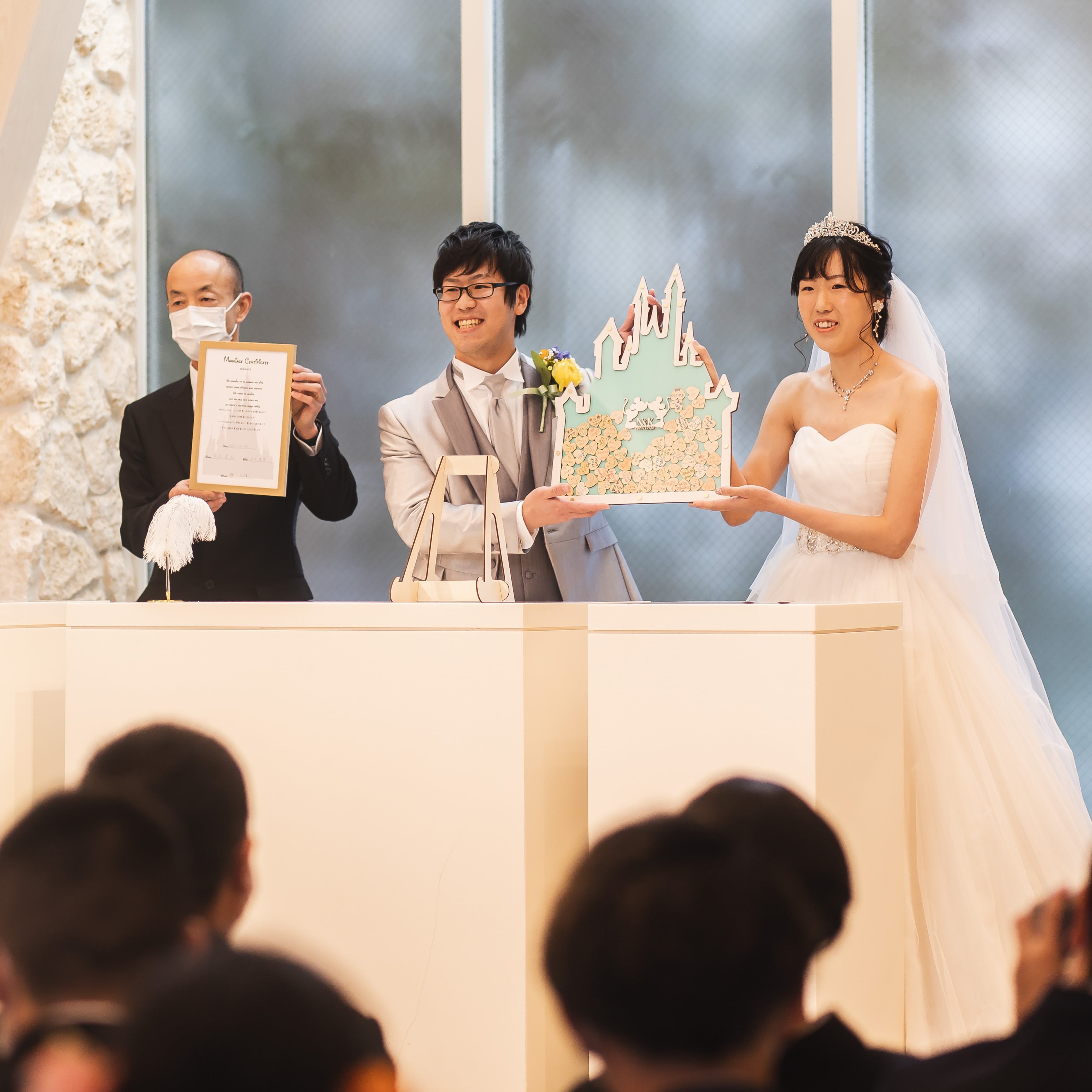 私たちがやりたかったこと、そのために準備してきたことがちゃんと進行していくか不安なところもあり、準備の段階では少し緊張していましたが、チャペルのドアが開いた瞬間、ゲストの皆さんの驚く顔や笑顔、たくさんのスマホがこちらを向いている光景が目に飛び込んできてから、その緊張も吹き飛びました。どんどんと順調に進行していく中で、とにかく楽しむことができました。ゲストの方も、誓いの言葉でアレンジを加えてくれたり、お菓子まきや新郎新婦クイズに楽しく参加してくれたり、本当に楽しんでくれている様子が伝わり、最高に幸せな気分で一日を終えることが出来ました。