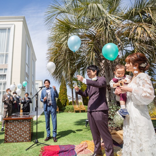 もともとガーデンを使いたかったので外に出やすい雰囲気を作れそうだなと思いました。会場の天井も高く高級感がありカーテンが水色だったのが個人的に好きな色だったのですぐに気に入りました。