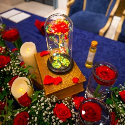ばらの花を多く使用したり、招待状やメニュー表も世界観を崩さないようにしました。