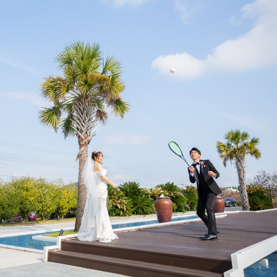 テニスが共通の趣味でテニスコートで出会ったおふたり。
