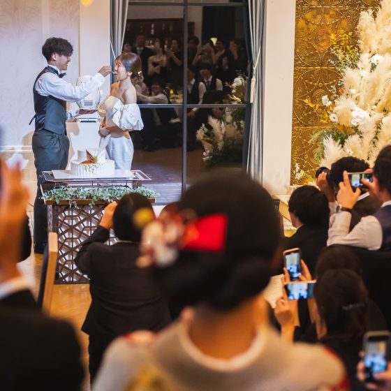 私たち自らゲストのテーブルを回ったりすることで、ホームパーティーのような雰囲気で式を行うことが出来ました。
