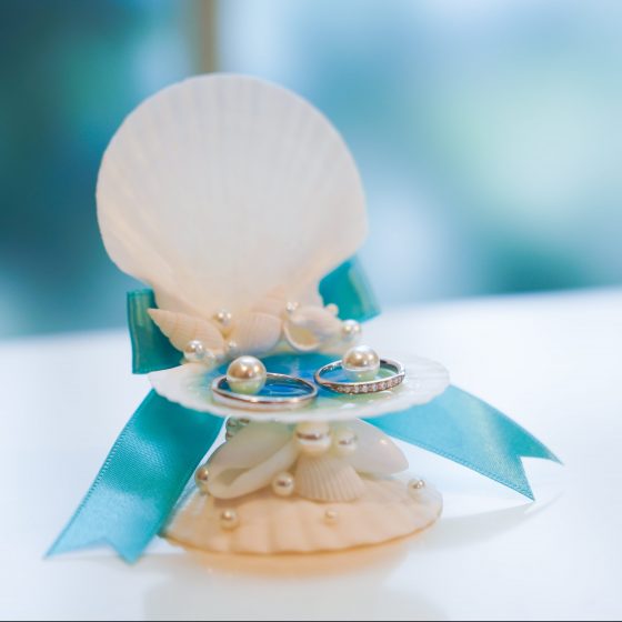 思い出の沖縄を全面的にお料理で表現させて頂いたこと。そして旦那の好きな人気漫画の雰囲気も作り上げて頂ました。グッズを持ち込みそれもメイン席に飾っていただきました。ゲスト卓は貝殻や海感を出していただきました。ドレスや髪型も自分好みのものに仕上げていただきました。カラードレスのブーケも貝殻を入れて下さり私好みのにして下さりました。オープニング映像を動画と前撮り写真や今まで行った沖縄の写真をマッピングで映し出して頂きました。ゲストの写真も入れて下さりました。