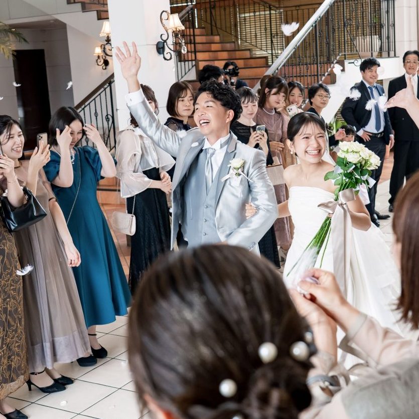 もう1つ会場があり同時並行で忙しい中でもスタッフの皆様方が丁寧かつ迅速な案内をして頂いたおかげでスムーズに挙式・披露宴を結ぶことが出来ました。また自身でも気付かないような些細なことにも気にかけて下さり助かりました。また事前のプランと違うことが起きても臨機応変に対応して頂き感謝しています。ダーズンローズを行ったことで挙式の時間の中でも参列者の方々と関わり話すことが出来たことは良かったです。パンブッフェは思っていたより好評で沢山食べてくれたことや後日、絶賛して頂き満足してくれたことが嬉しいです。ケーキは入念にイメージを擦り合わせ、料理長に何度も確認して頂き理想のケーキを作成してくれ、とても満足しています。