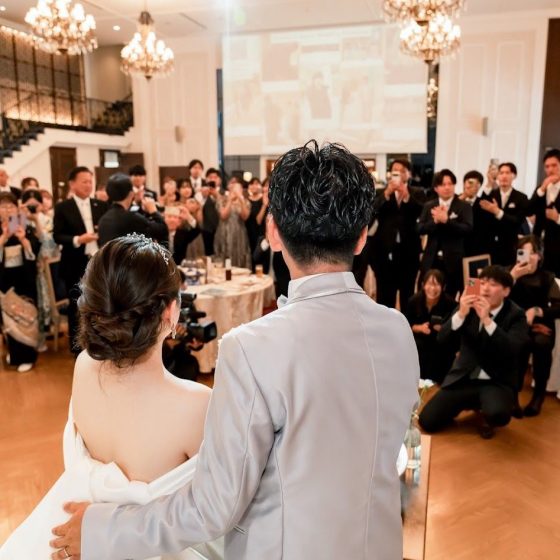当日は結婚式という実感がわかないまま式が始まりました。旦那は、とても緊張していましたが、私はワクワクした気持ちで式に臨むことができました。ゲストたちの反応はどうかな?や、ちゃんと進めてられるかな?という多少の不安はありましたが、そんな不安は不必要でした。終始楽しい!!!!!笑顔が絶えない!!!!!結婚式をして本当に良かった!!!!!と、思いました。過去一かっこよくて可愛くて幸せ我々をみんなに見てもらえて祝ってもらえて嬉しかったです!!