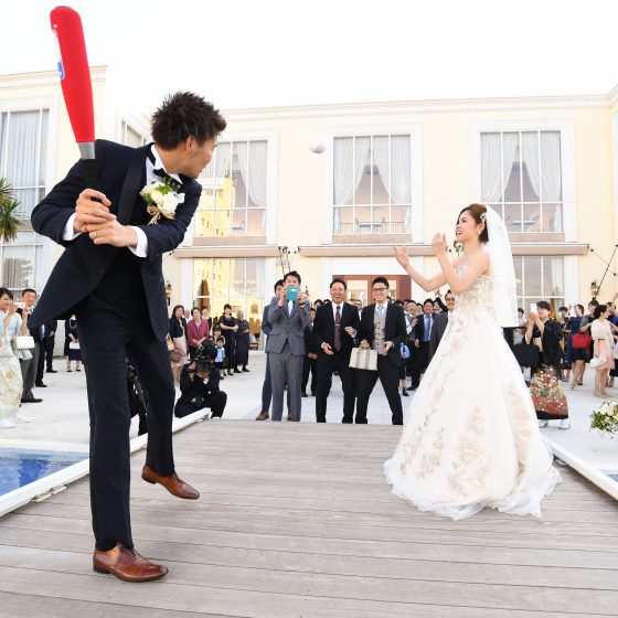 初めてディアステージに訪れた時に、式場全体を見学させて頂き、リゾート感溢れる外観や、最新の映像設備を備えたクールで落ち着きのある披露宴会場など2人の好みに合う式場だったことがディアステージを選んだ大きな理由です。