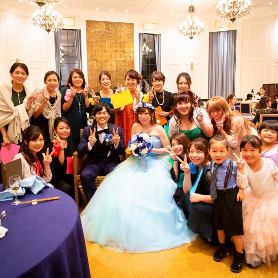 リゾートの様な統一感を出す為に、テーブルコーデやブーケ、ドレスなどを海のように青や水色系で考えました。また、兄を新婦にして登場させたり、ウエディングケーキを2人の好きなバスケットにしたりなど私達だけではなくゲストの方達にも一緒に楽しんで笑顔になってもらえるようにしたところです!