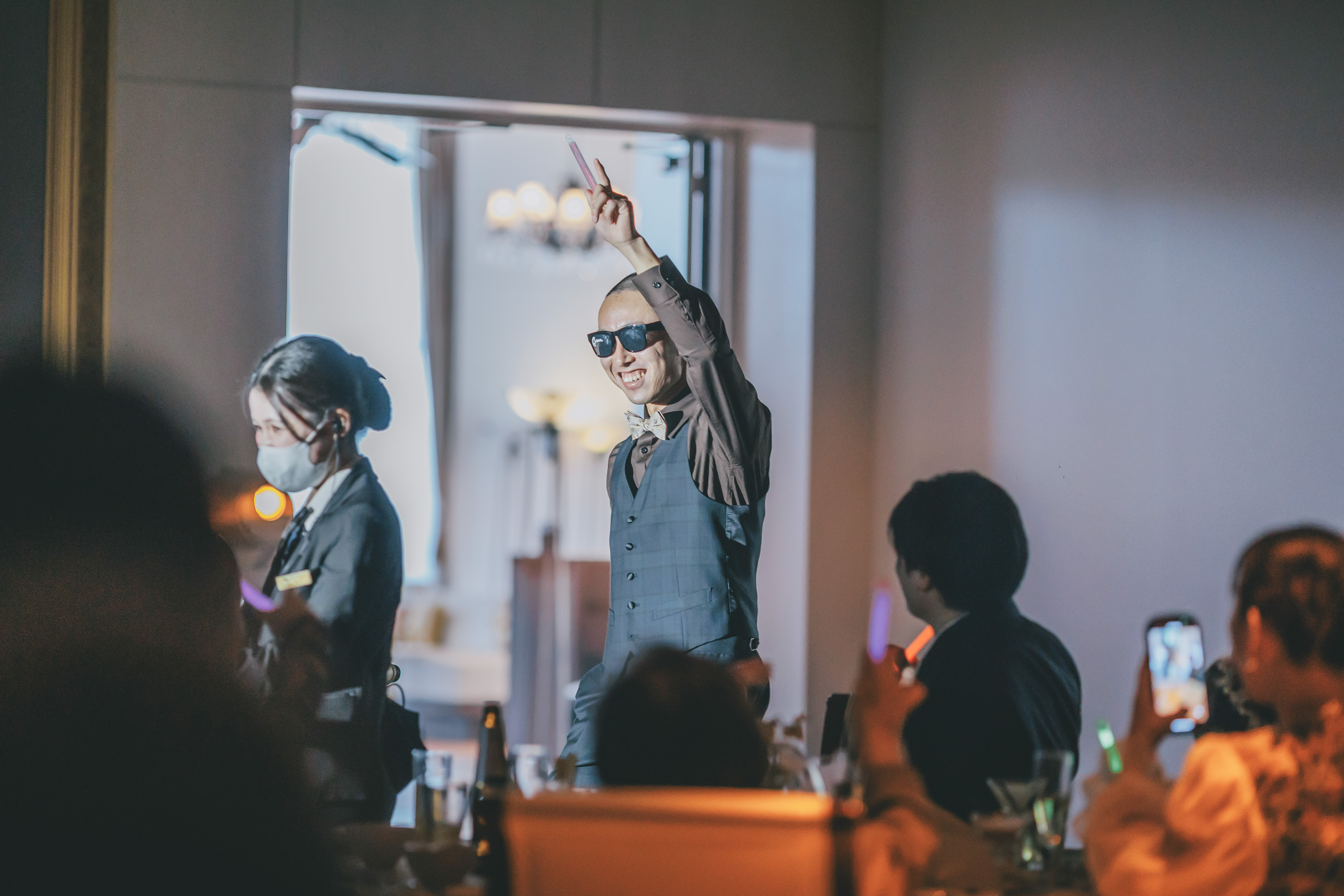 中座では新郎様の好きな映画のグッズを皆様で持って退場。おふたりもゲストも等身大の姿で楽しんでいる時間でした。