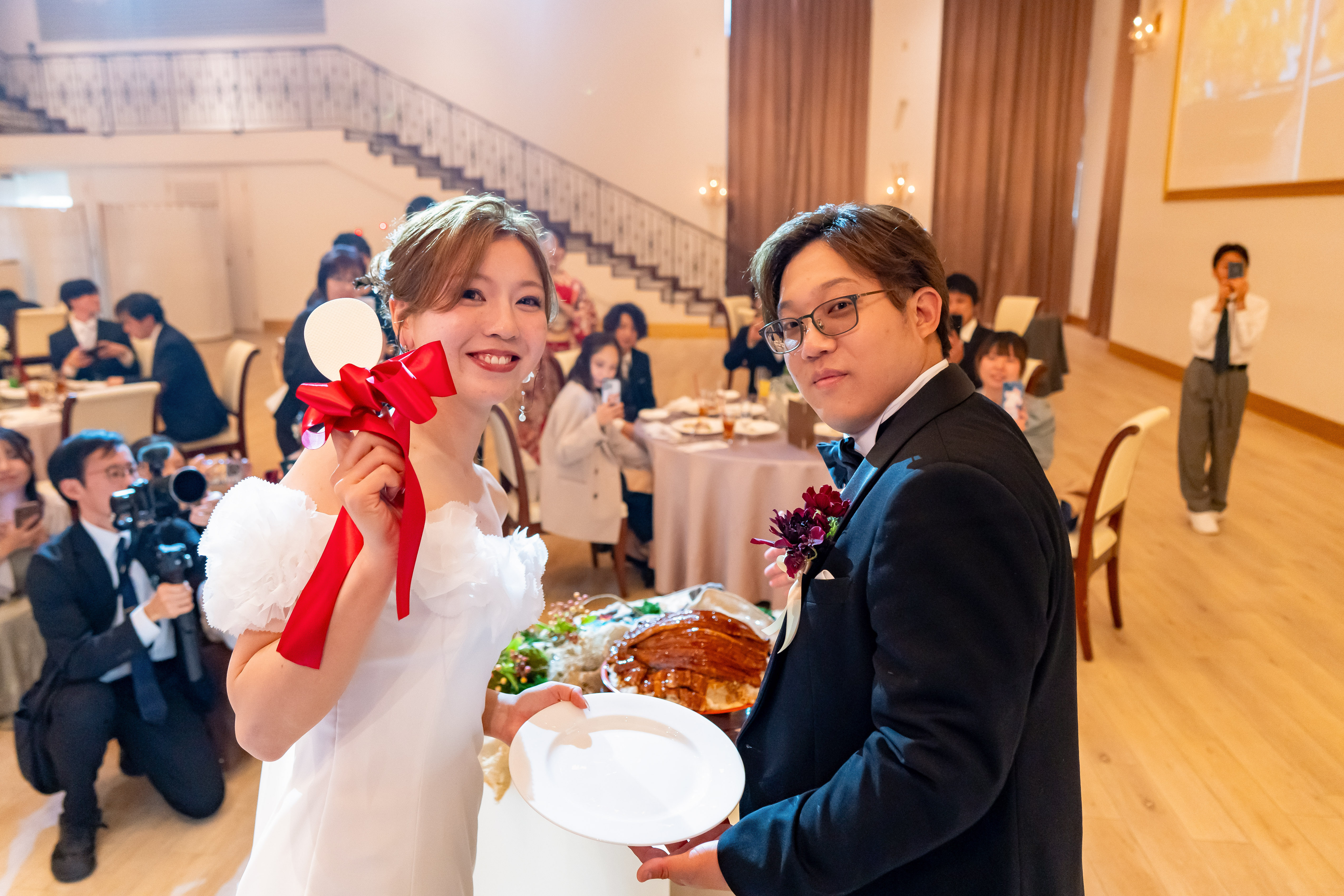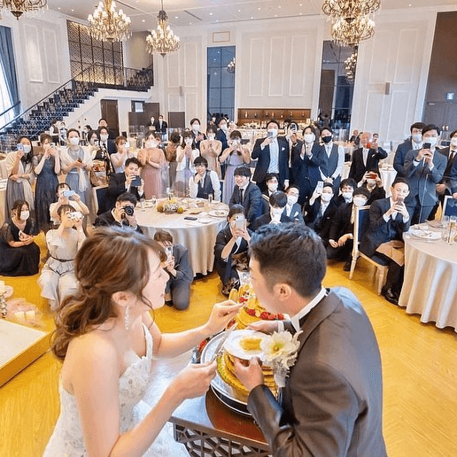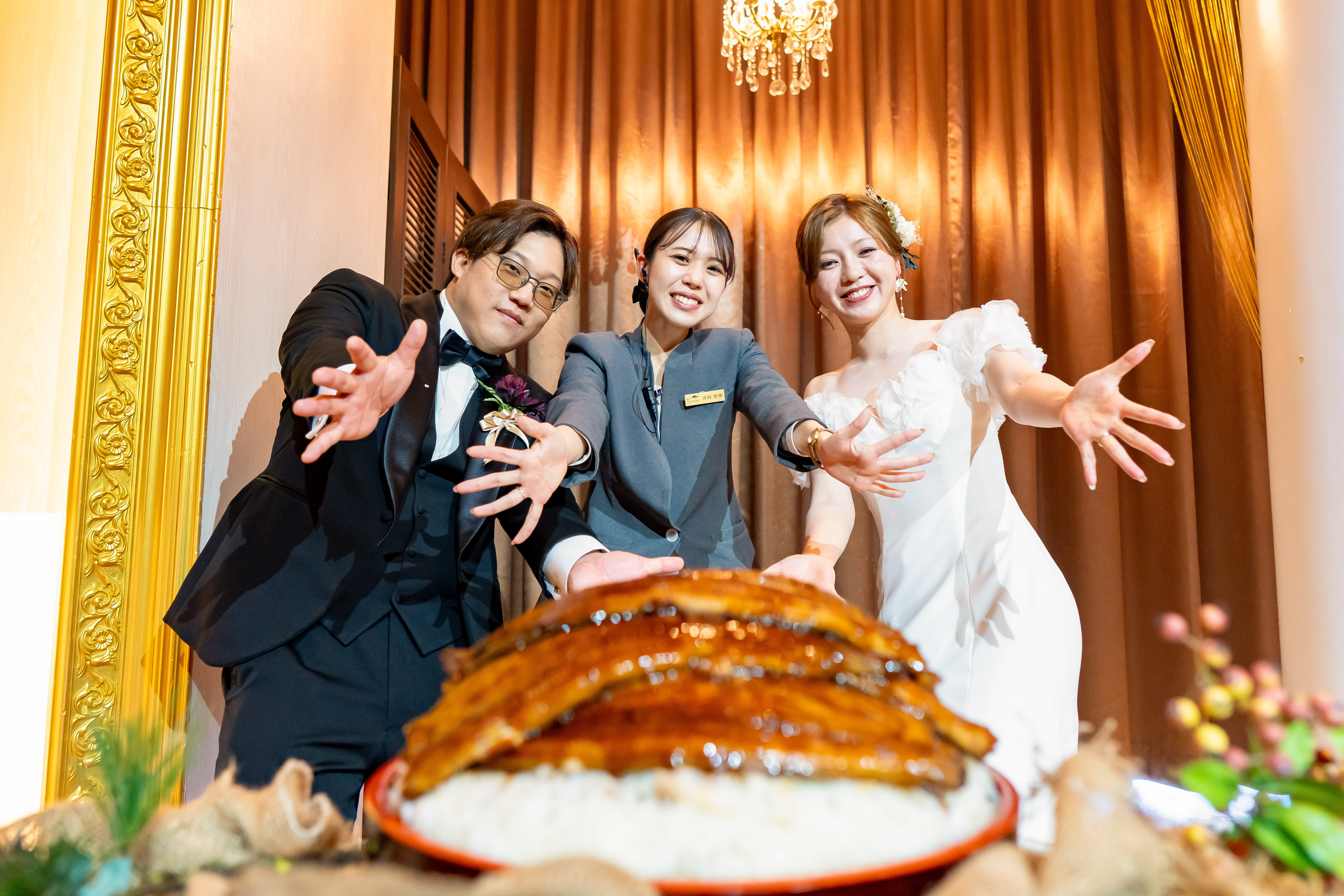 特にお打合せから楽しみにされていた「うな重セレモニー」では、うな重が登場した瞬間に大きな歓声と笑顔が広がり、皆様がおふたりの元へ駆け寄って温かく見守ってくださる光景が本当に素敵でした。