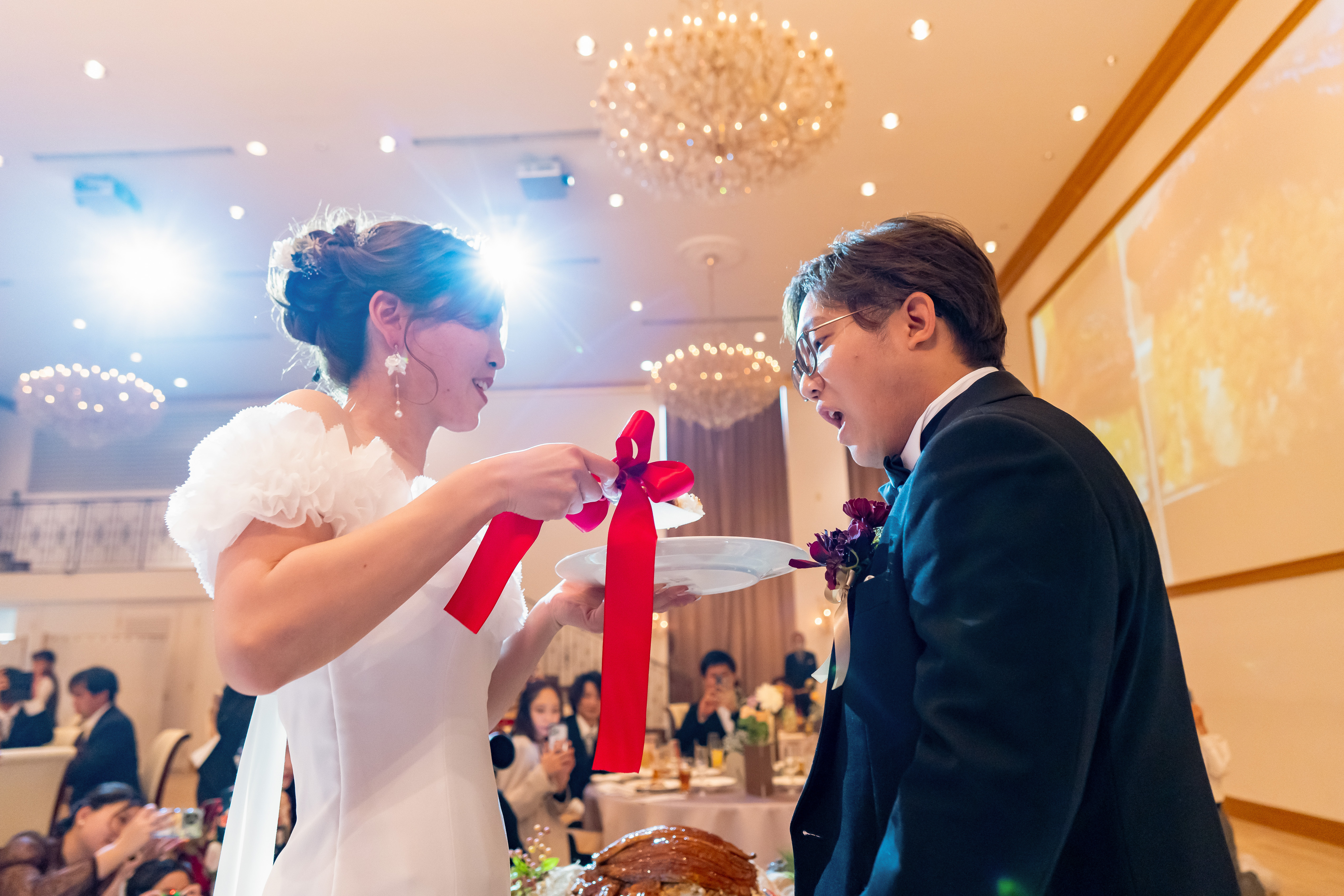 ファーストバイトは...大きなしゃもじで沢山すくってお互いへの想いを誓うことに。