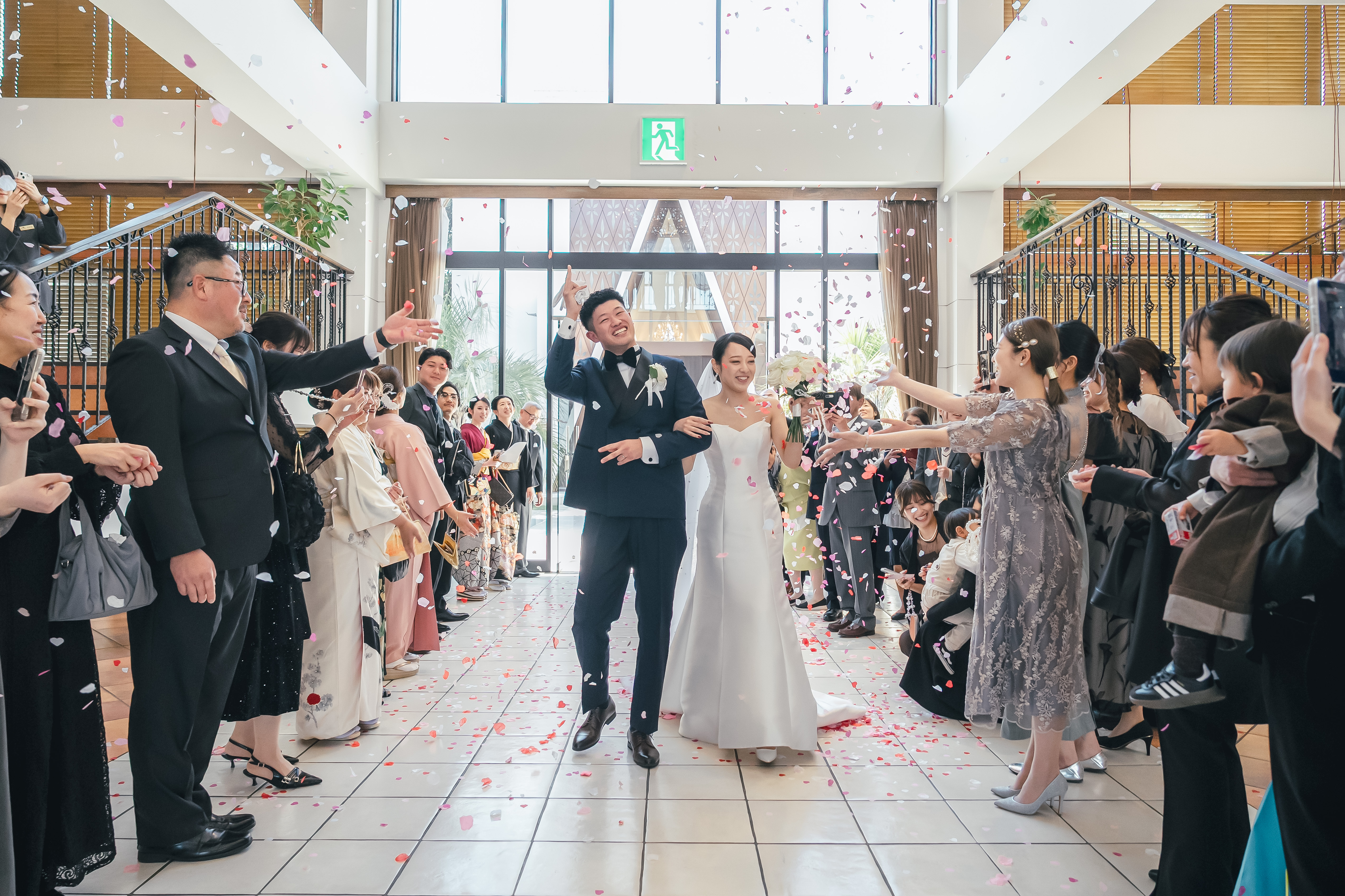 挙式が始まる前、緊張した面持ちのおふたりでしたが、扉が開いた瞬間に大切なゲストの皆様の笑顔が目に飛び込み、自然といつもの柔らかな表情になっている姿が印象的でした。