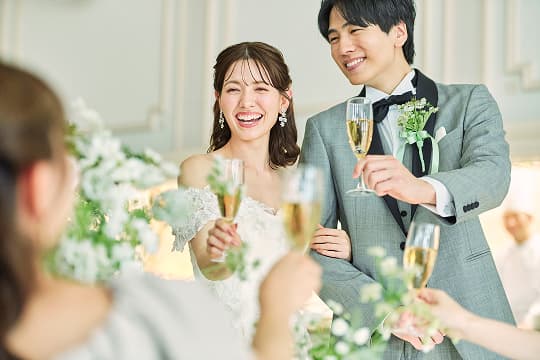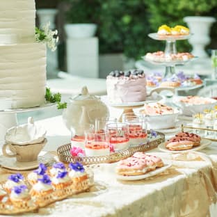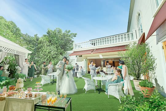 ラウンジでのプレパーティーやガーデンでのウエルカムパーティー、デザートブッフェなど愉しみ方はアイデア次第。笑顔に包まれた最高のひとときをお過ごしください。