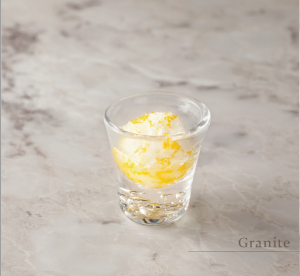 メインのお肉料理を召し上がっていただく前のお口直し。柑橘系の果物を使用しさっぱり仕上げました。