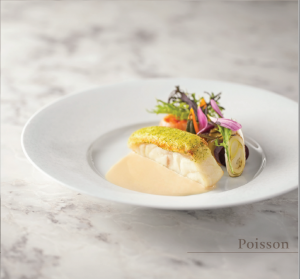 高級料亭などでは定番とされるクエ。塩麹でマリネして旨味を最大限に引き出しました。爽やかな香りの香草パン粉を乗せて焼き上げることに、サクっとした歯ざわりがよさと、クエ本来が持つふわっとした柔らかさと二種の食感をお楽しみいただけます。白ワインのクリームソースでご提供いたします。