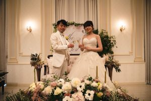 コロナで結婚式を行うかとても悩まれたお二人。そんなお二人から結婚式後に頂いたお言葉「この状況で結婚式を行うかどうか悩みましたが、結婚式当日を迎えゲストのみんなの顔を見た瞬間、そして結婚式が無事に結んだ後に「結婚式をしてよかった!」と思いました。」