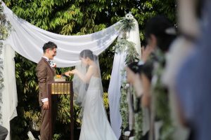 A:まずはお客様のご希望に沿ってご案内をいたしますが、今はコロナ禍で様々なカタチがございますので、一概にこちら側から一方的に準備期間は設定しておりません。まずは開催されたいお気持ちを聞かせていただき、それに伴った内容を考えていき、結婚式のご準備期間を決めて、ご一緒にスタートできたらと思います。結婚式の内容にも異なりますが、大体2.3ヶ月~6か月ほどあれば準備できます。